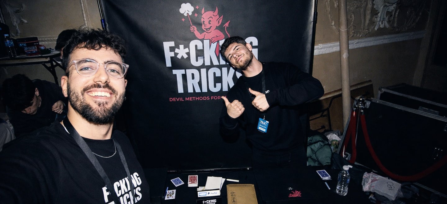 At Fucking Tricks we offer our original creations, but we also work directly with magicians and professionals through consulting, private mentoring, and custom effect development. If you have an idea, a specific request, or you want to push your magic further, we can help build the method with you.